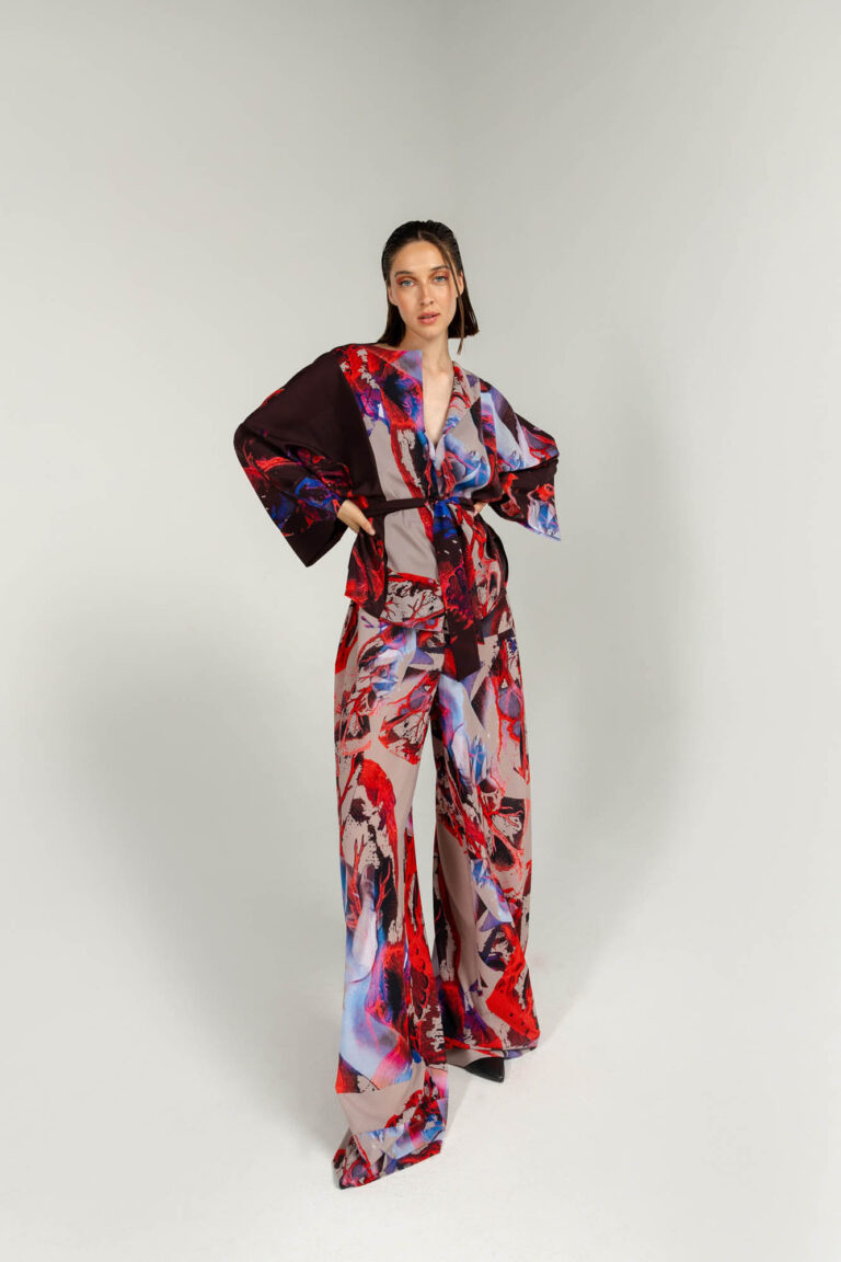 Light weight, high waisted pants with our iconic printed material, one size