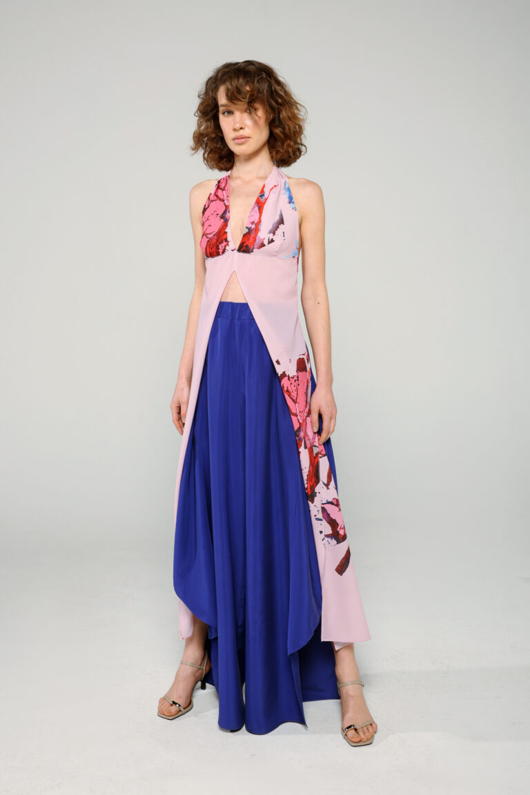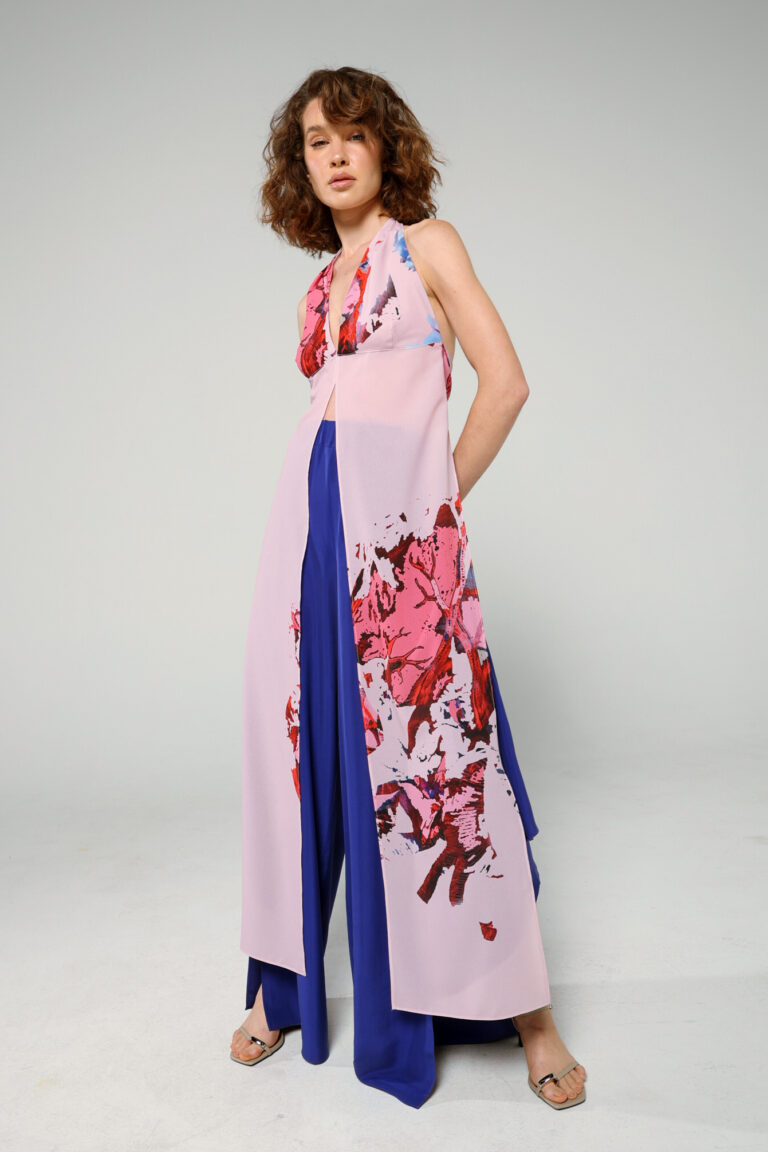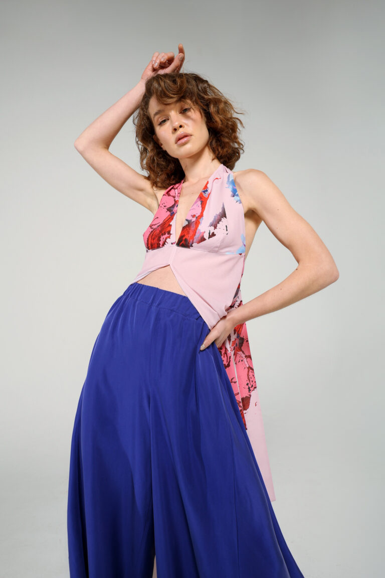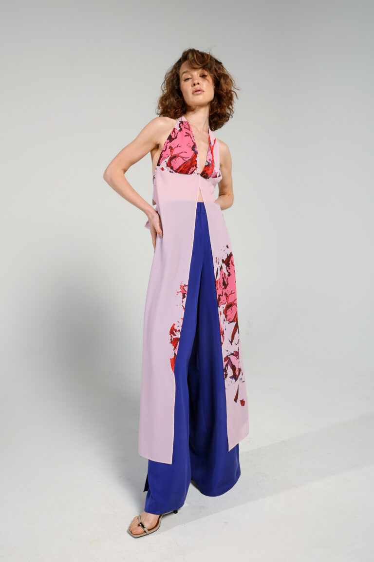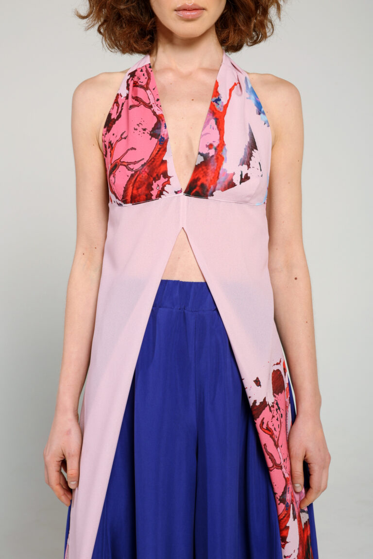Flowy, semi-transparent top with our iconic printed material, one size